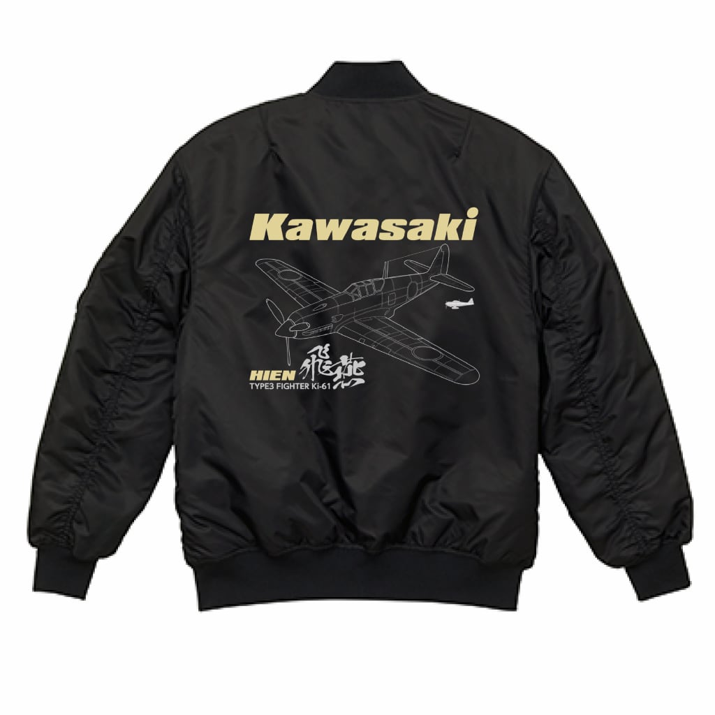 スマートな機体が超カッコいい「三式戦 飛燕」。パイロット御用達のMA-1タイプのジャケットにラインアートの「飛燕」!